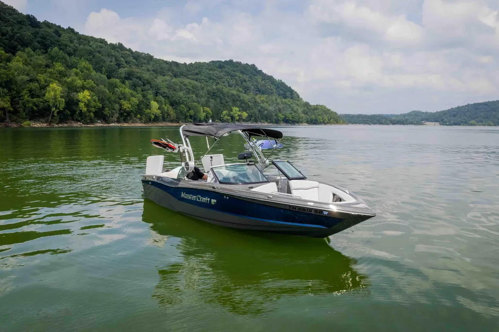 Enjoy features like the upgraded touchscreen control panel, Bimini top, premium upholstery, and a custom MasterCraft trailer included in the sale.