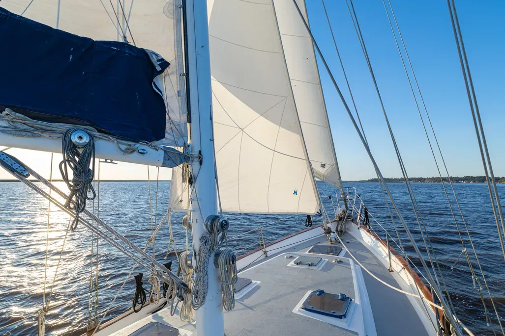 - Ketch rig with roller furling headsail for easy sail handling.